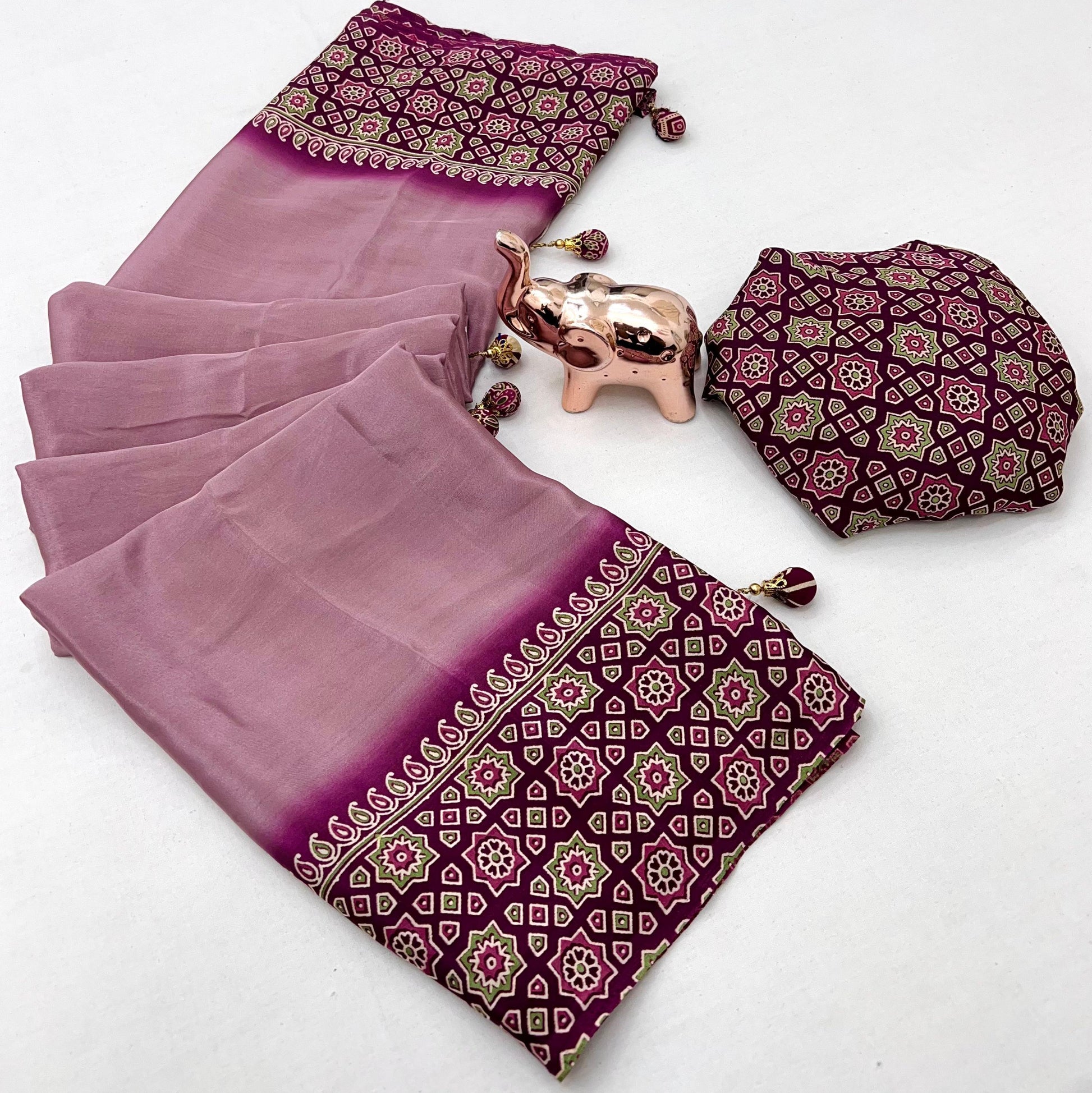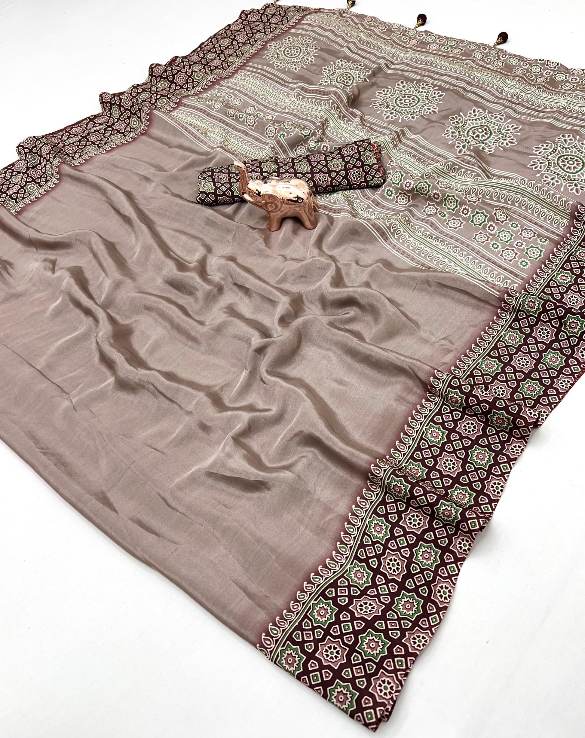 Kayatri New Ajrak Print Satin Saree with Rich Pallu & Tassels