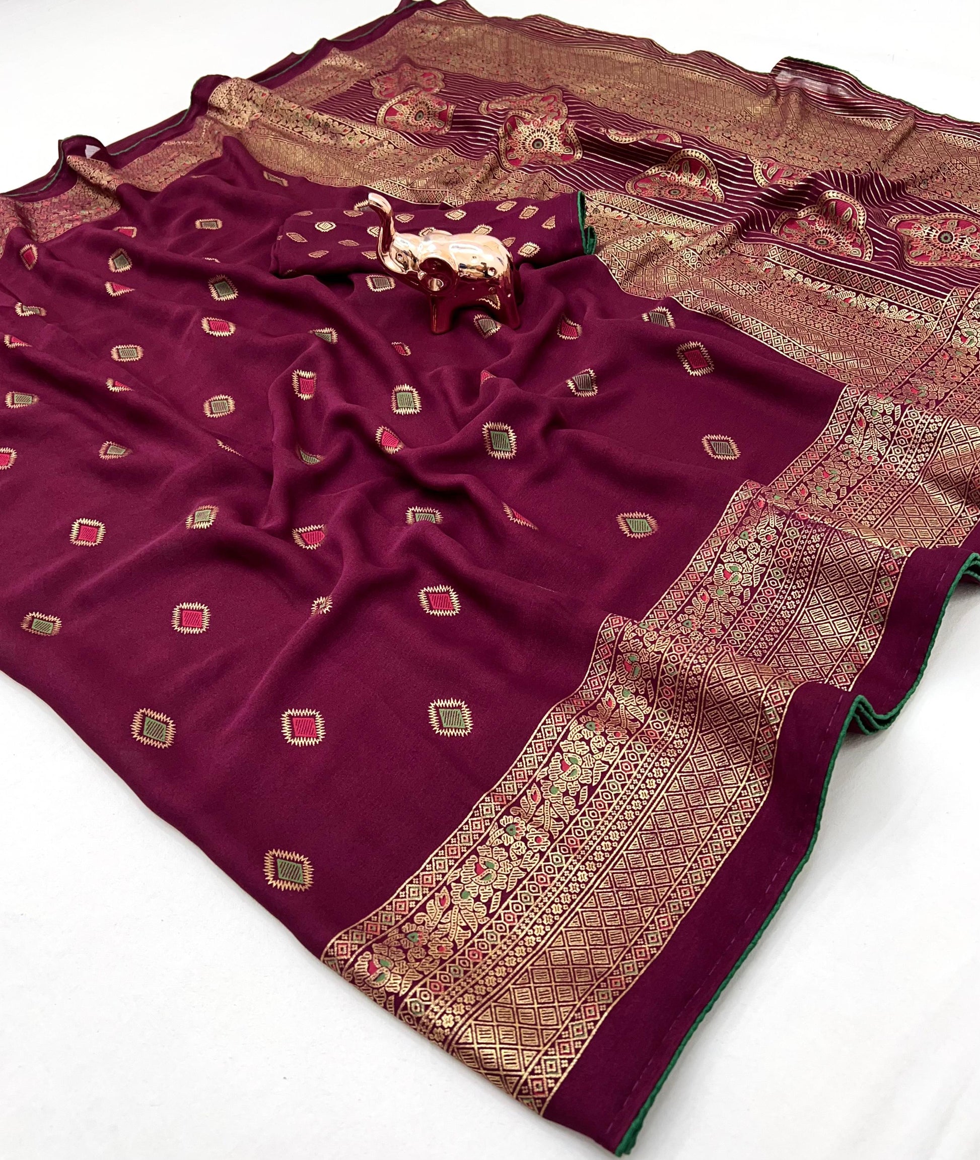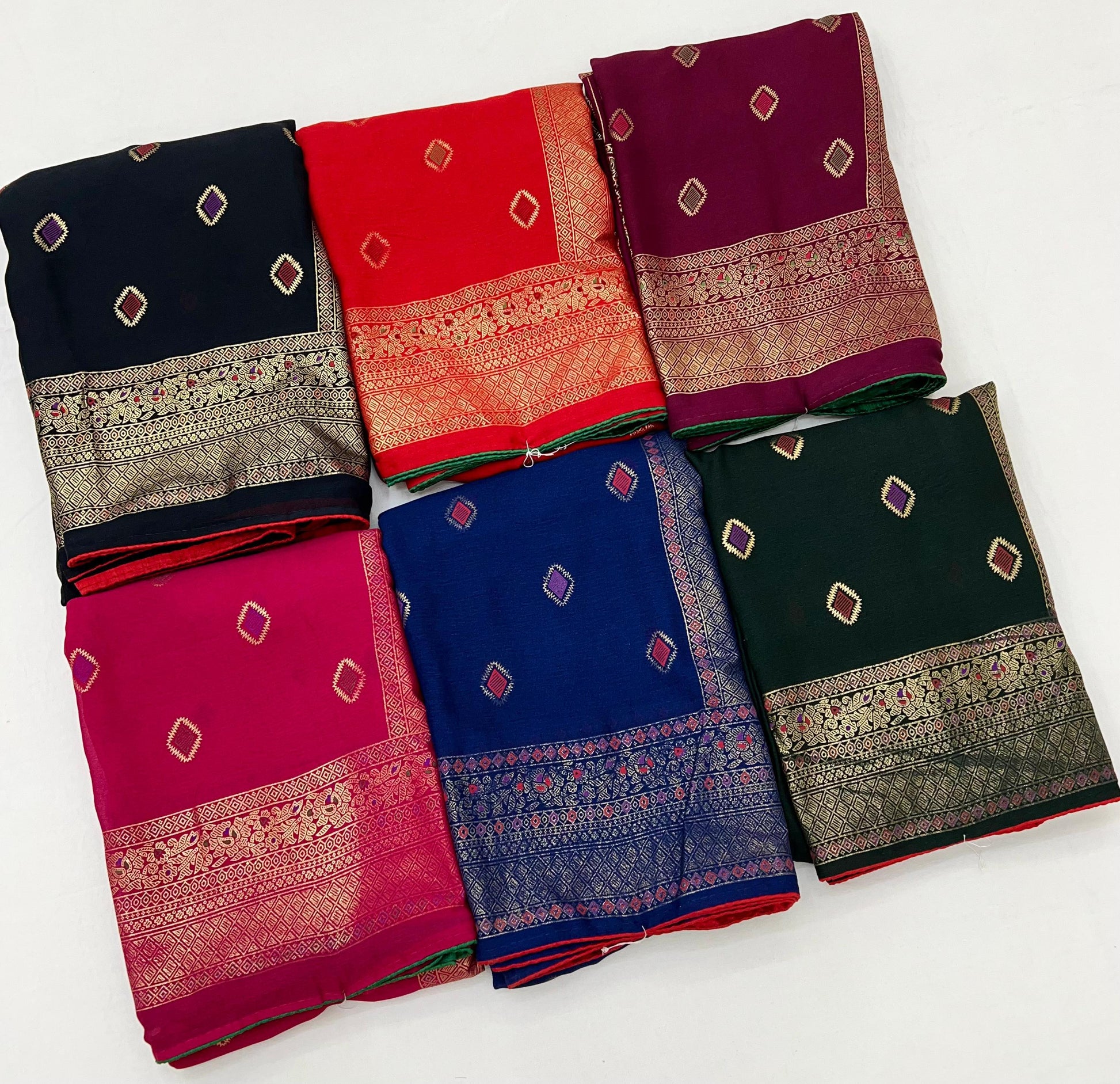 Kayatri New Bamber Viscose Georgette Saree with Foil & Ikat Print Blouse