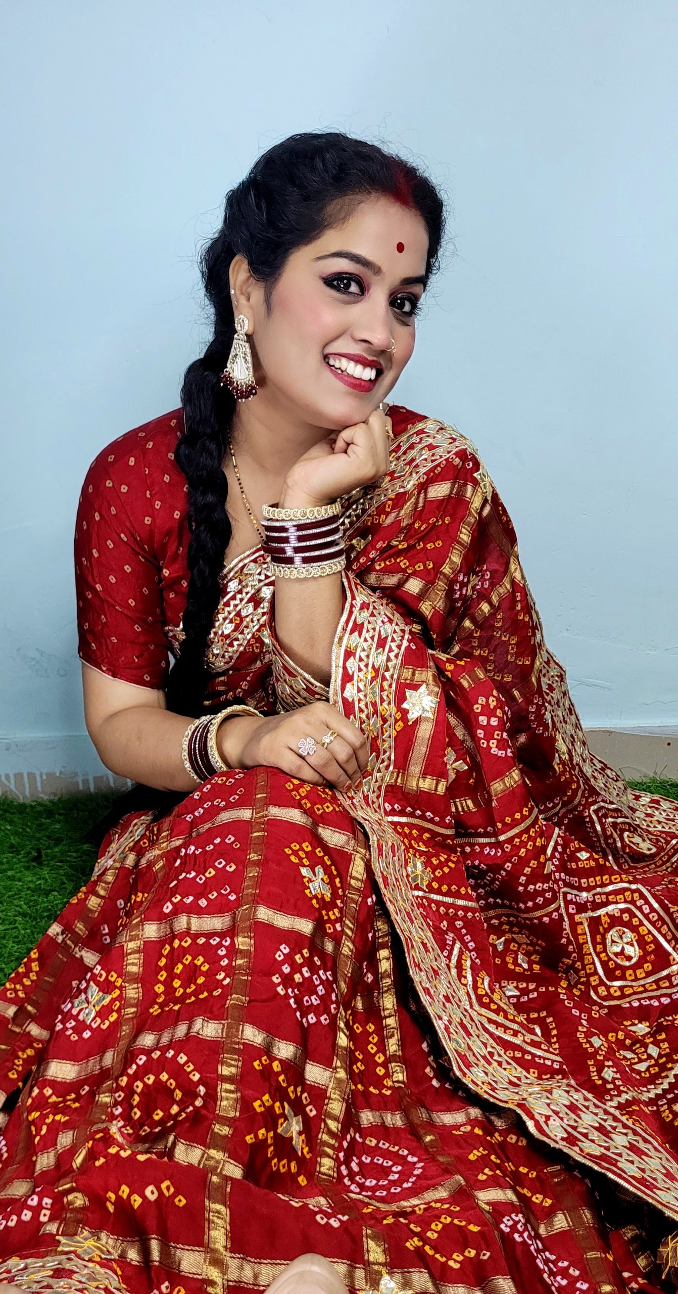 Kayatri New Bridal Modal Gajji Silk Saree with Full Kachi Gotta Patti Hand Bandhej