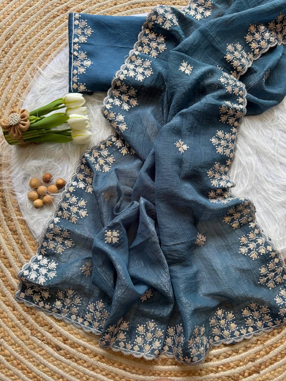Kayatri New Designer Crushed Silk Saree with Heavy Zari Floral Border
