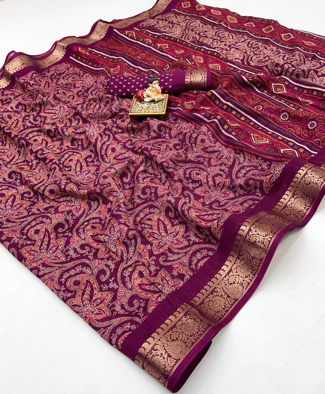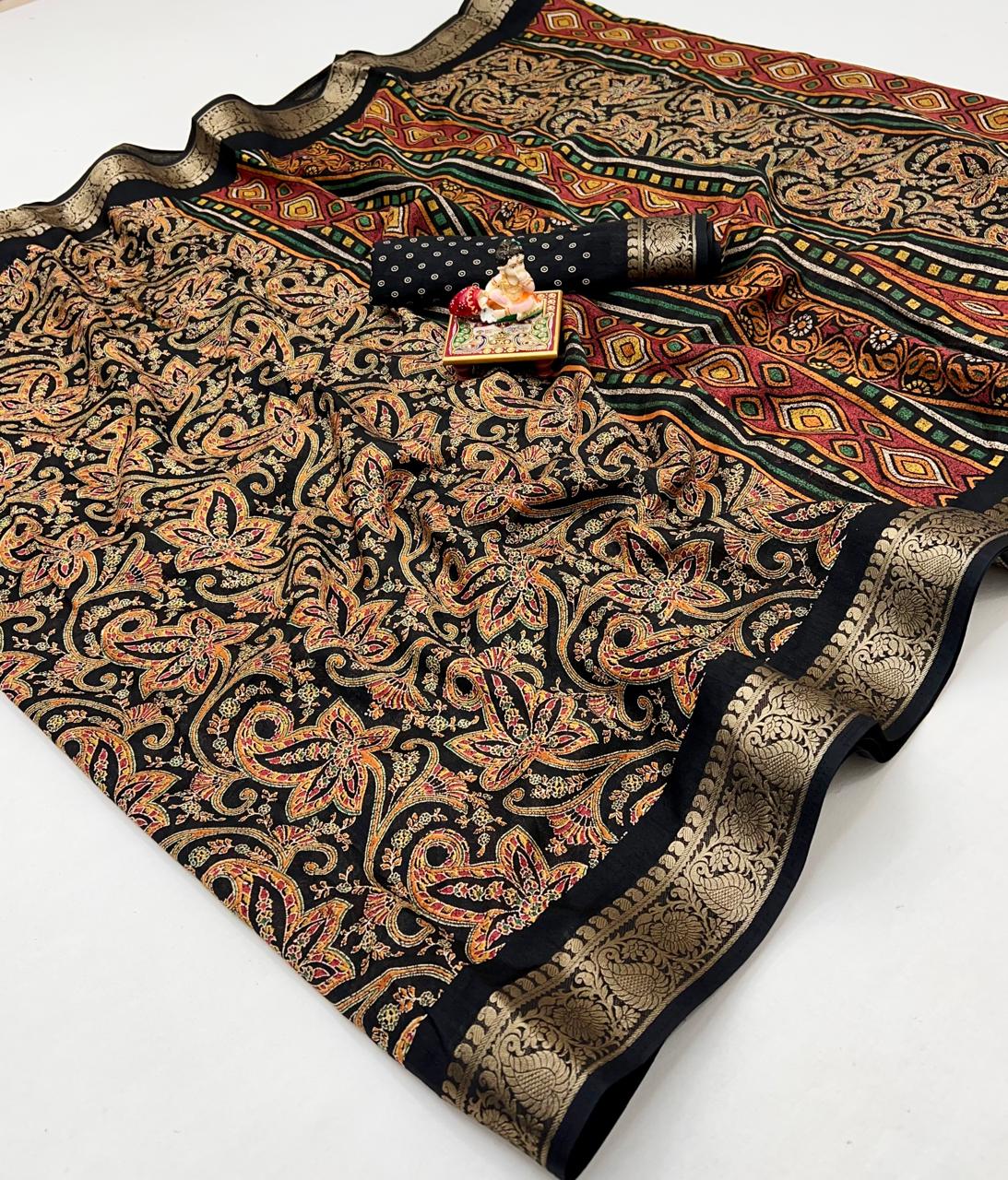 Kayatri New Elegant Dola Silk Saree with Zari Woven Border & Running Blouse