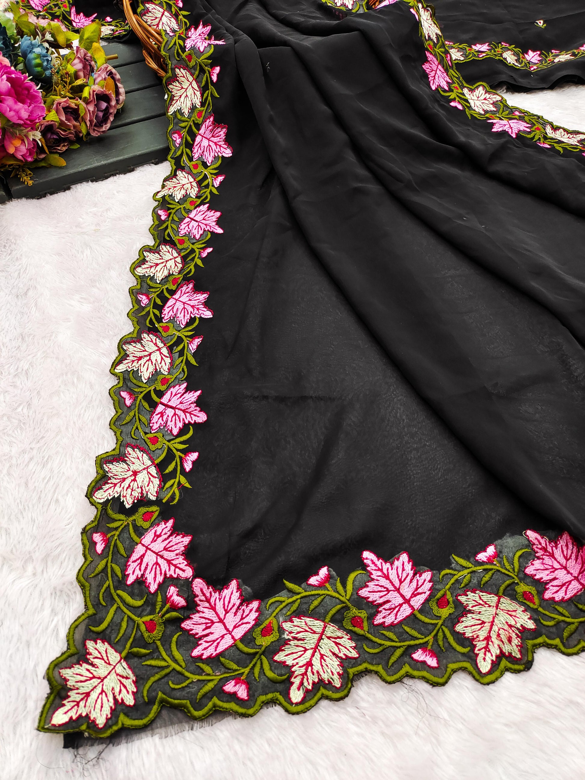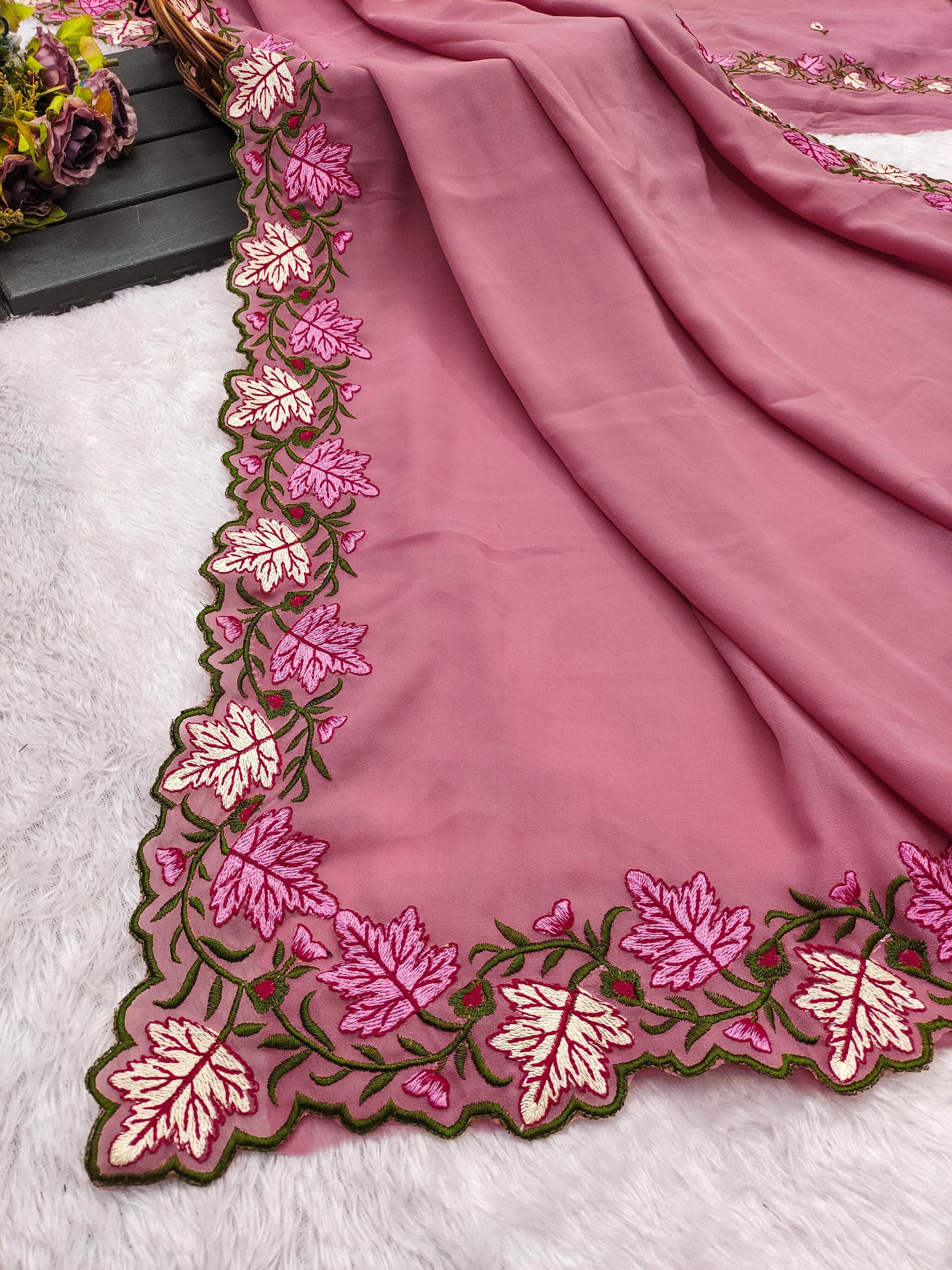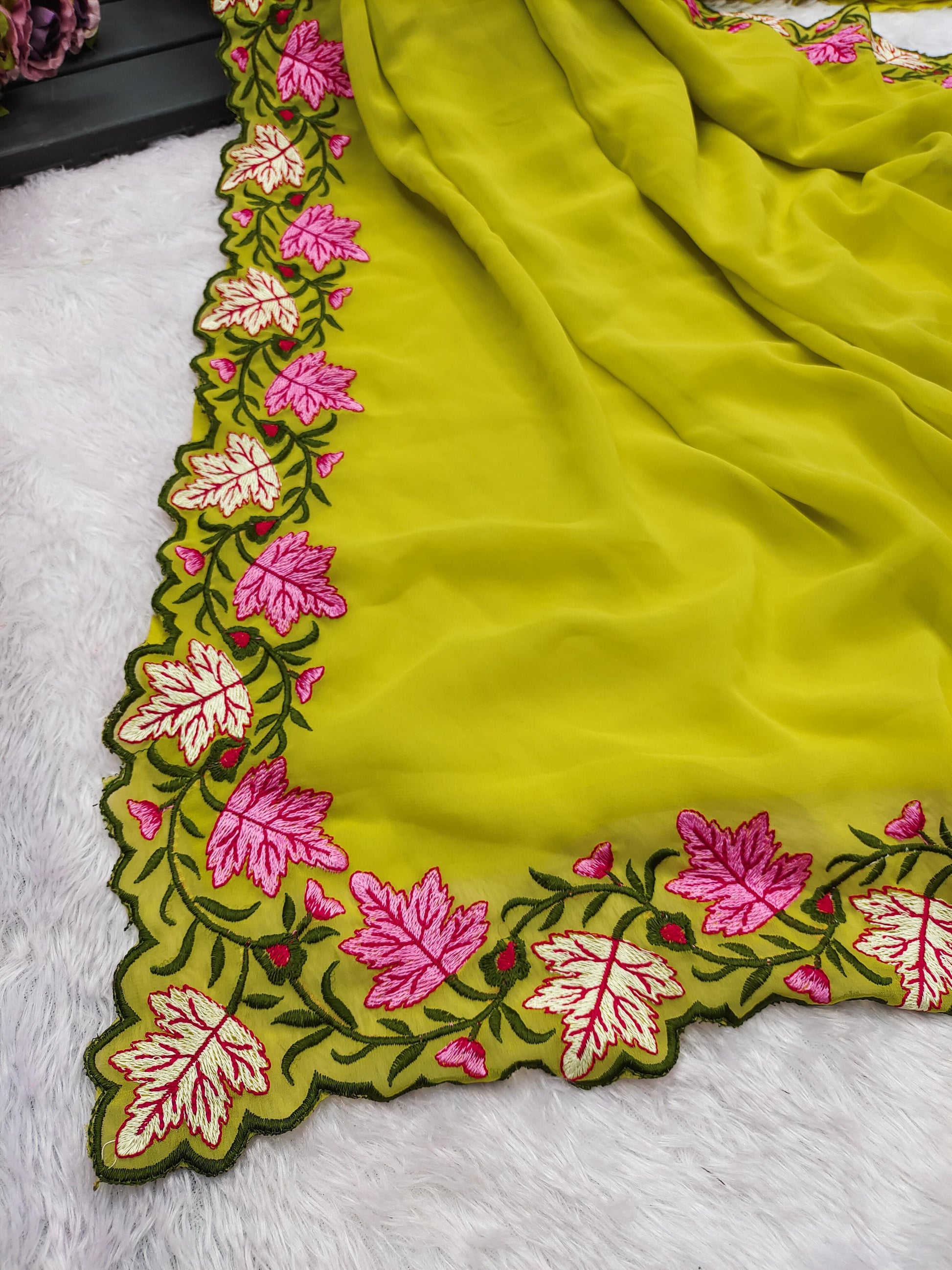 Kayatri New Premium Pastel Saree Soft Georgette with Elegant Embroidery