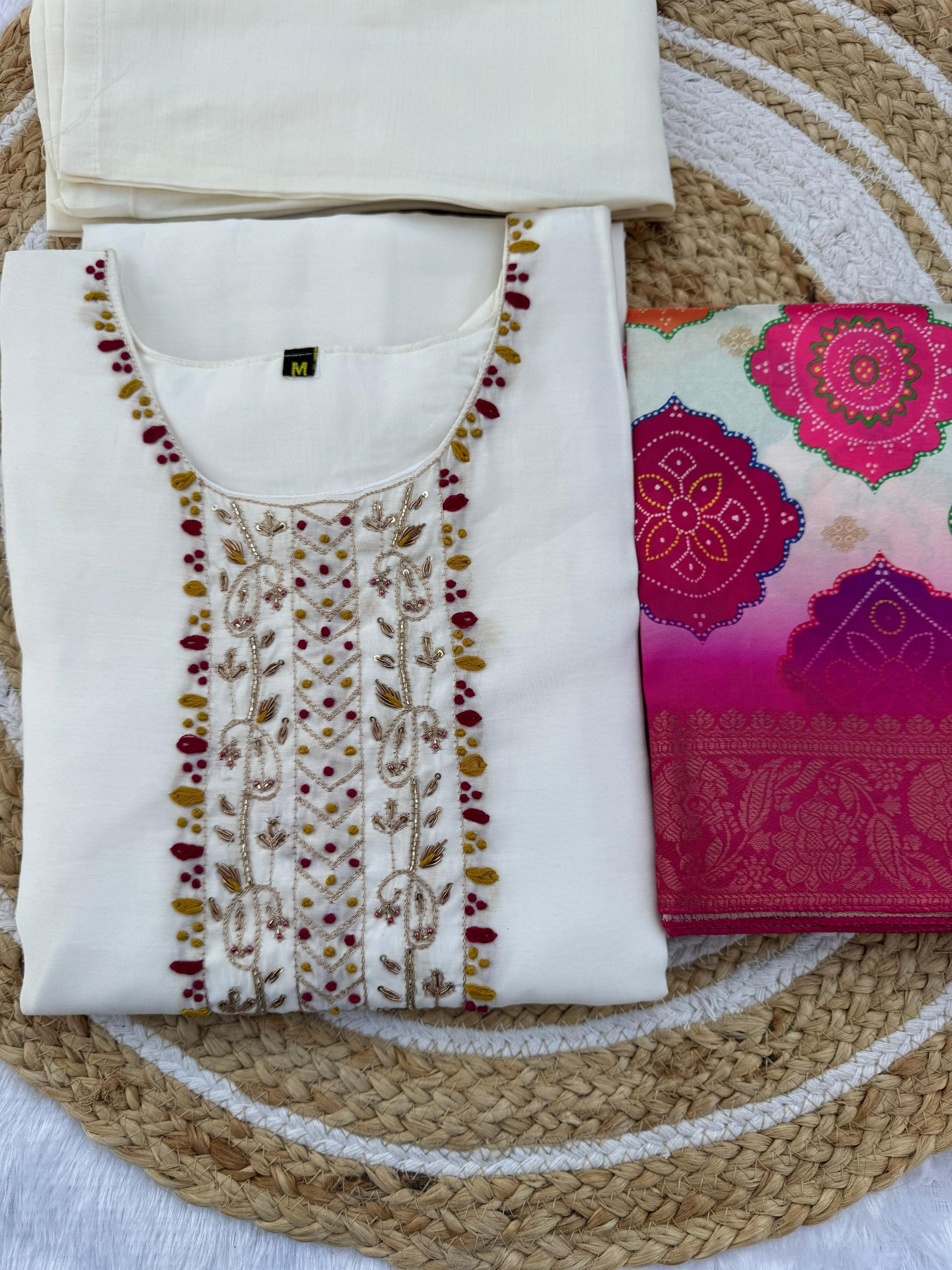 Kayatri New Premium Roman Silk Kurti Set with Hand Work Chanderi Dupatta