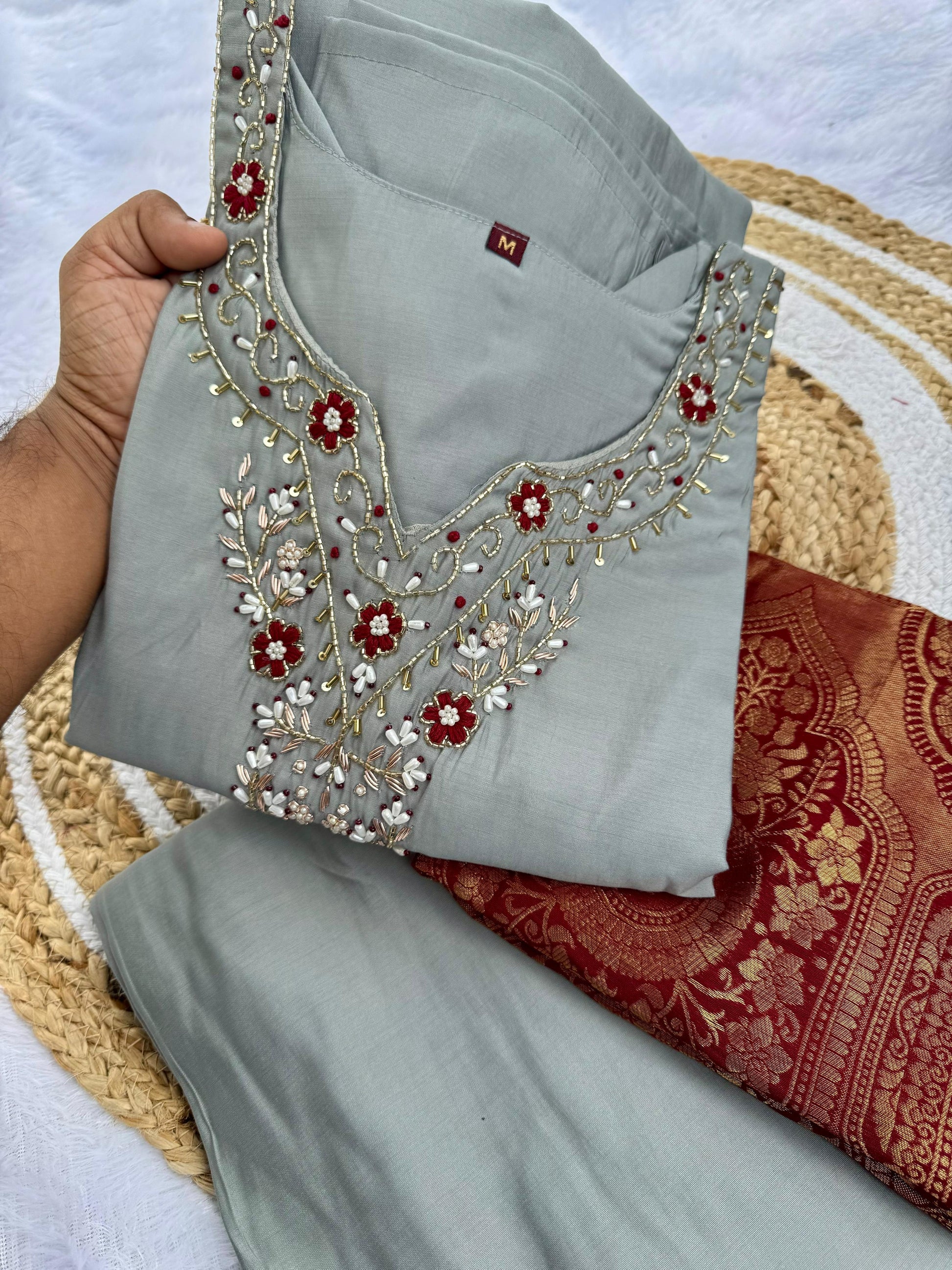 Kayatri New Premium Roman Silk Top and Bottom with Hand-Dyed Banarasi Dupatta