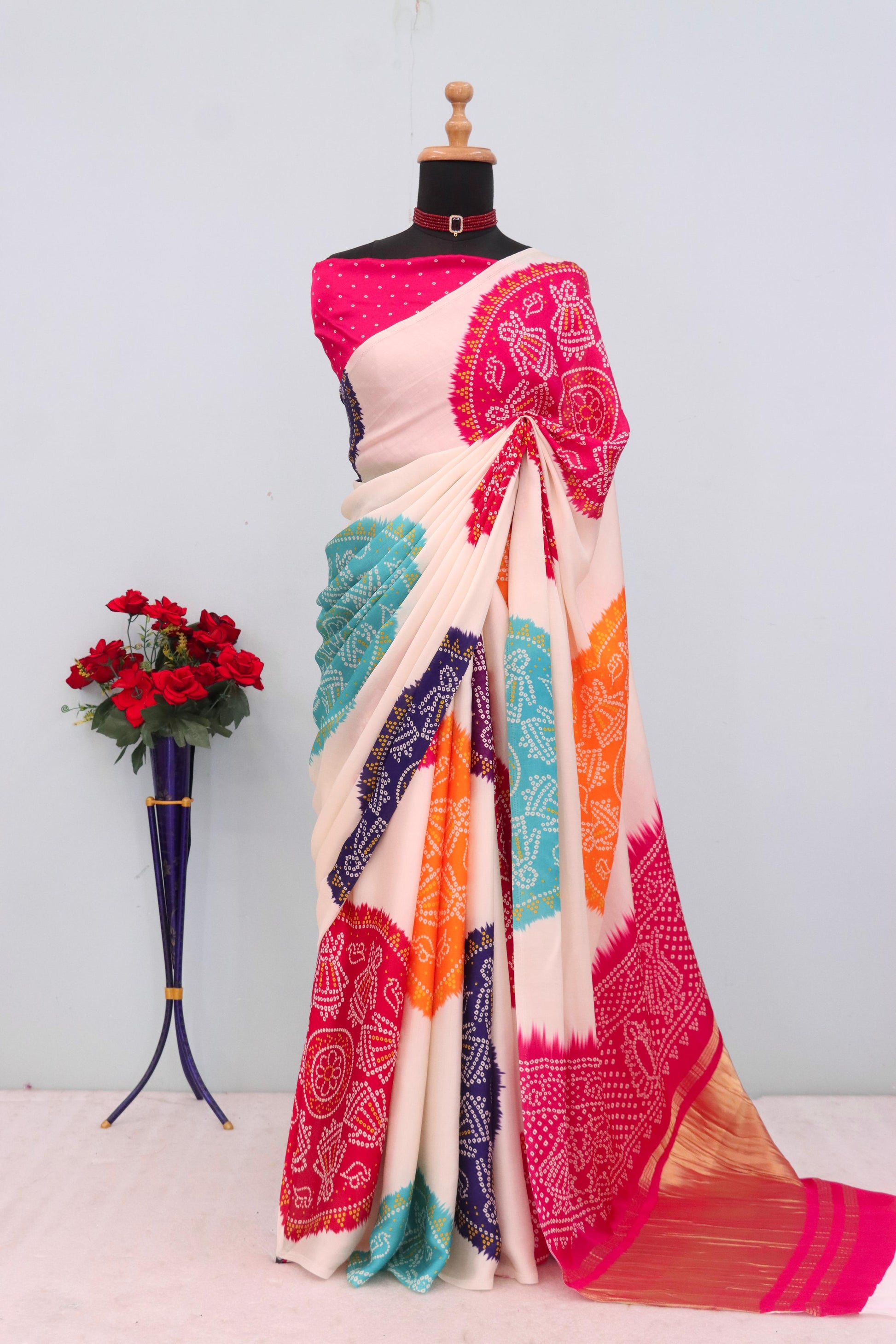 Embellishment : Bandhej Print With Lagadi Pallu Saree
