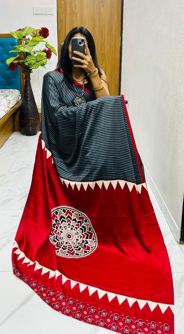 Kayatri New Pure Gajji Soft Silk Saree with Ajrakh Bandhej