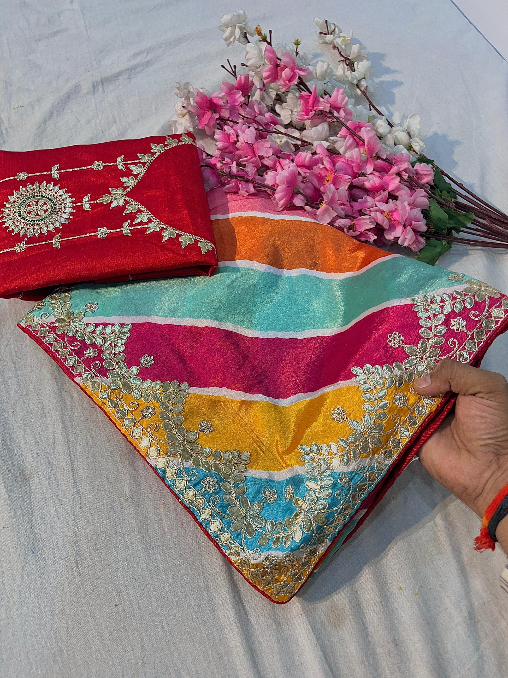 Kayatri New Royal Chinon Leheriya Saree with Rich Gotapatti Foil Work