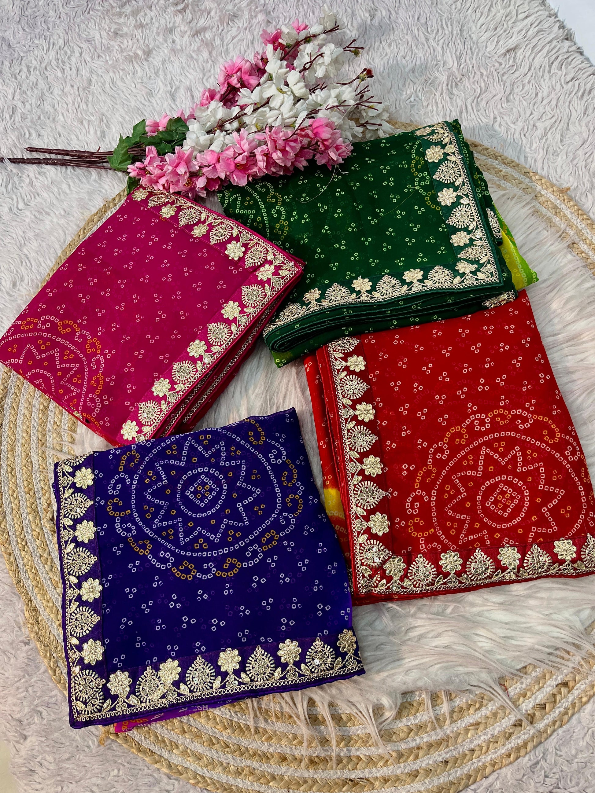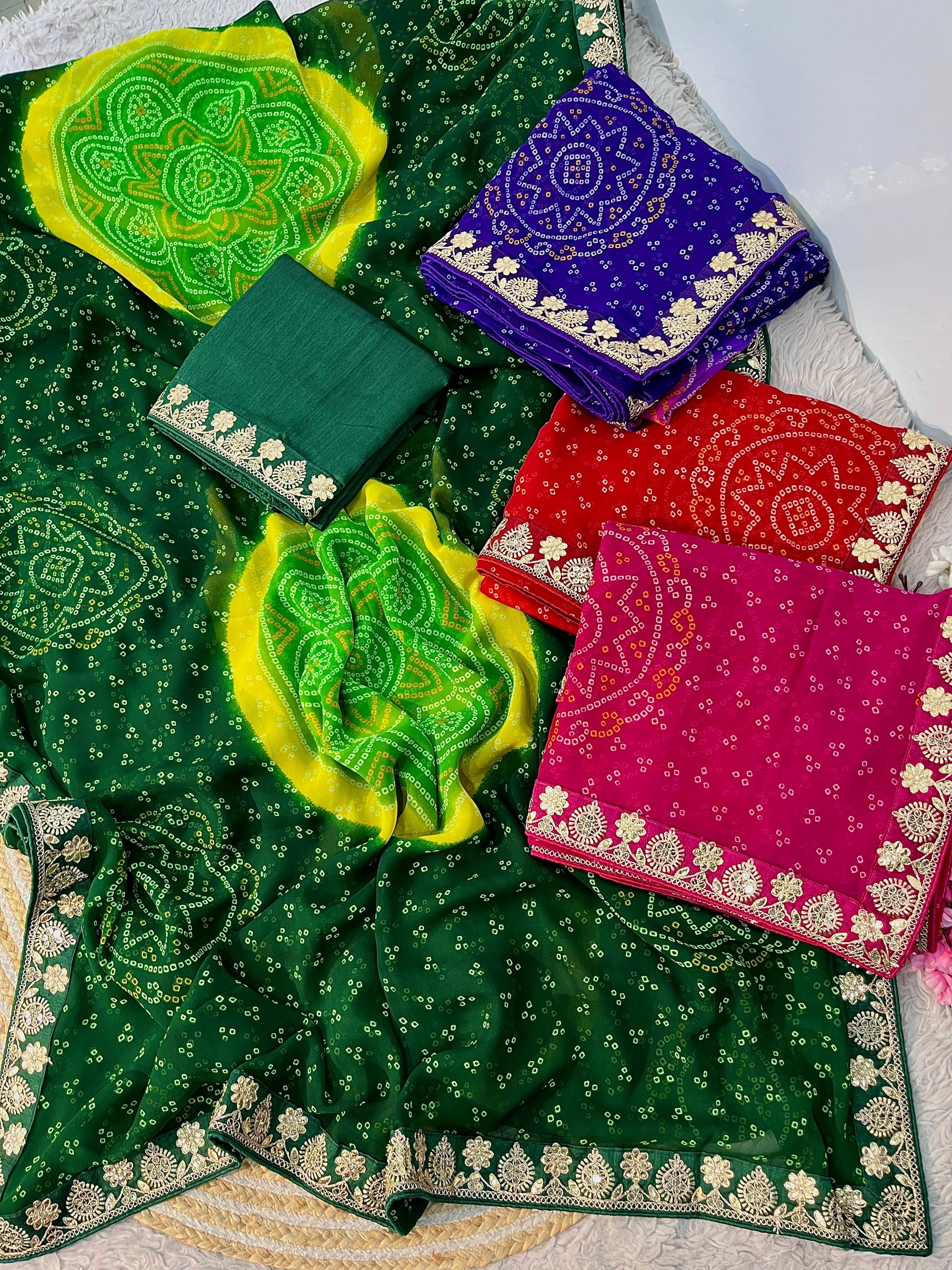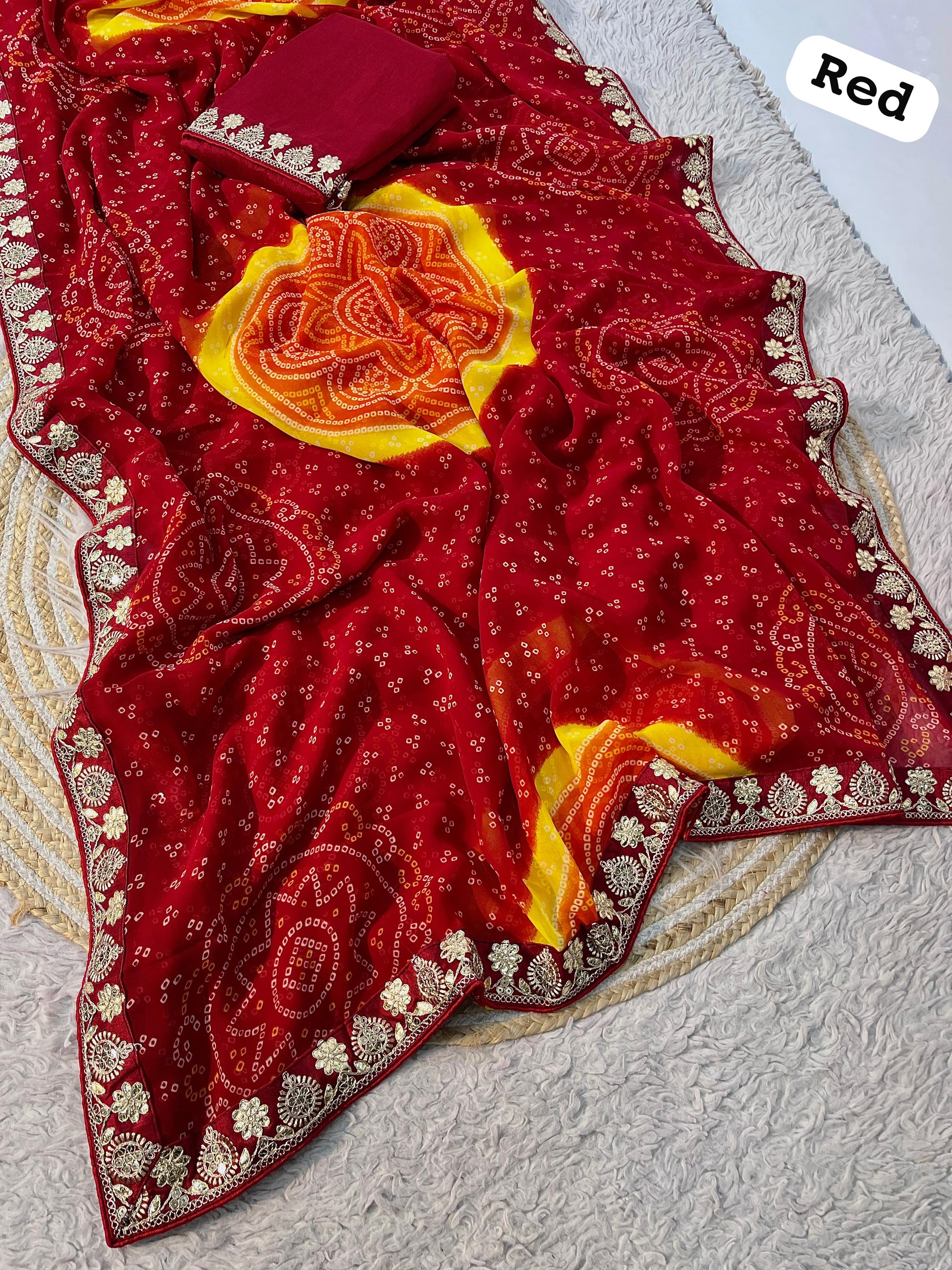 Kayatri New Soft Georgette Bandhej Saree with Gotapatti Lace Border & Heavy Designer Blouse