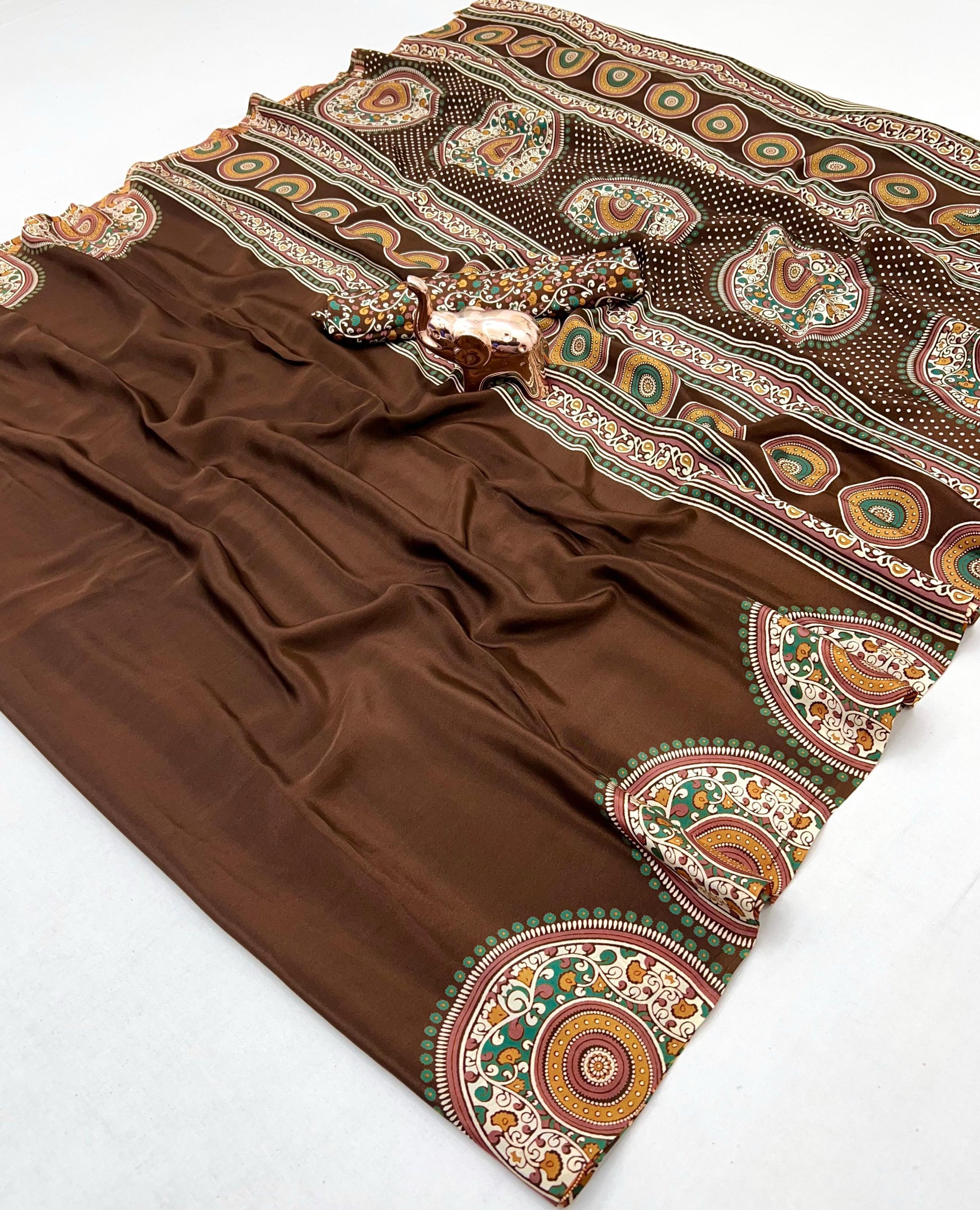 Kayatri New Traditional Ajrak Crepe Satin Saree With Rich Pallu